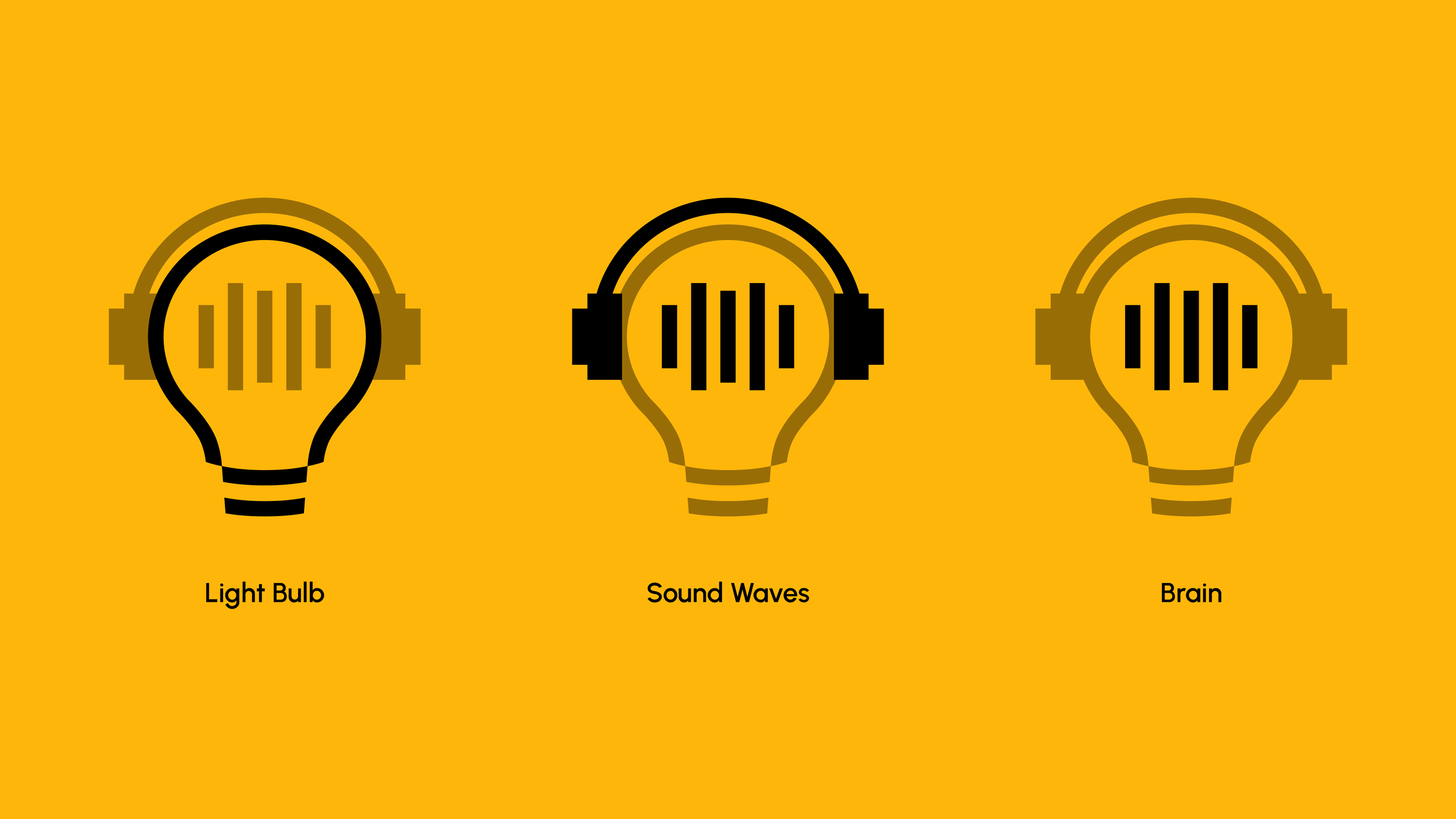 The light bulb symbolizes creativity, innovation, and the power of ideas. The combination of headphones and sound waves highlights Imagine CoLabs' focus on music and sound, while the abstract brain inside the light bulb represents artistic growth and skill development. This unique symbol captures the essence of the brand, making it both memorable and distinctive.