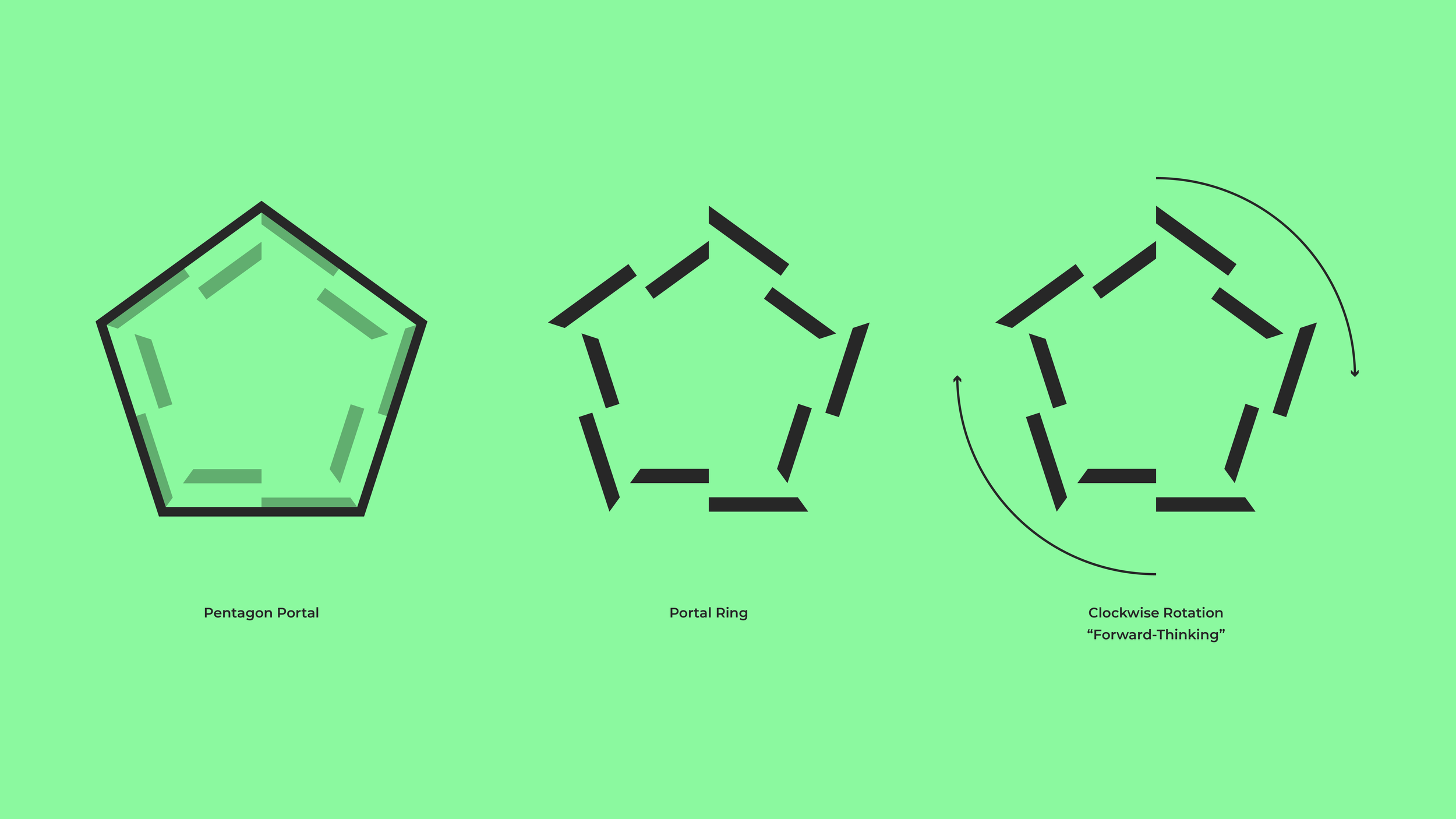 This mark symbolizes a gateway to transformative creative possibilities. Visually striking and uniquely distinct from conventional circular portal designs, it ensures PORTAL stands out with a memorable, innovative, and forward-thinking brand identity. The clean, sharp lines of the pentagon portal give it a modern and sleek appearance.